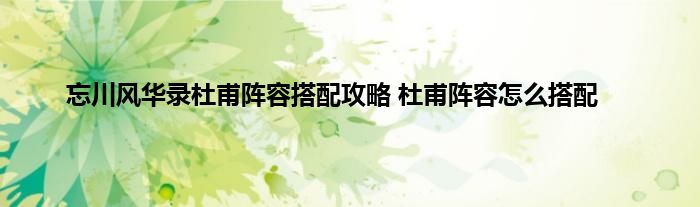 忘川风华录杜甫阵容怎么搭配?杜甫是游戏中的一个很强力的角色,搭配不同的名士可以产生不同的效果,那么具体怎么搭配杜甫是最强的呢,杜甫怎么搭配阵容呢,下面就来跟随小编一起来了解一下吧。