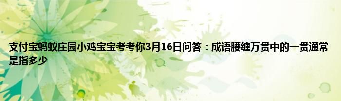 今天来聊聊关于支付宝蚂蚁庄园小鸡宝宝考考你3月16日问答:成语腰缠万贯中的一贯通常是指多少的文章,游戏是很多人的选择,但是游戏玩多了也会身心疲惫,现在就为大家来简单介绍下支付宝蚂蚁庄园小鸡宝宝考考你3月16日问答:成语腰缠万贯中的一贯通常是指多少,希望对各位小伙伴们有所帮助。