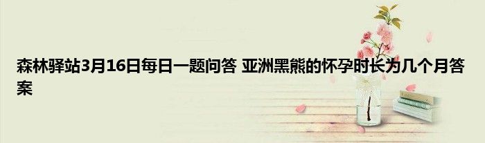 说说森林驿站3月16日每日一题问答 亚洲黑熊的怀孕时长为几个月答案,想了解森林驿站3月16日每日一题问答 亚洲黑熊的怀孕时长为几个月答案的小伙伴一起来看看吧