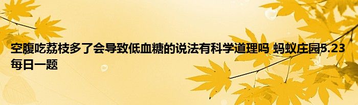 今天是5月23日,今天蚂蚁庄园的两个问题都和健康有关,其中有一个则问到空腹吃荔枝,荔枝是一种非常美味的水果,古代著名诗人苏轼曾有日啖荔枝三百颗的说法,那么空腹大量吃荔枝是否会造成低血糖呢,下面就来看看正确答案。