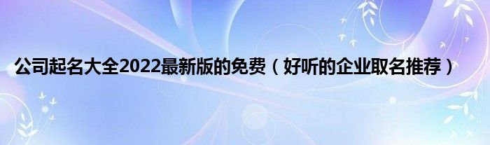 大家好,综合小编来为大家讲解下。公司起名大全2022最新版的免费,好听的企业取名推荐这个很多人还不知道,现在让我们一起来看看吧!