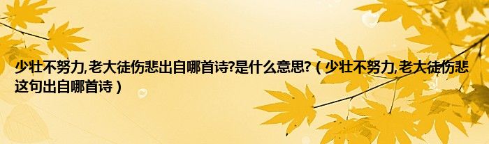 大家好,小科来为大家解答以上问题。少壮不努力,老大徒伤悲出自哪首诗?是什么意思?,少壮不努力,老大徒伤悲这句出自哪首诗很多人还不知道,现在让我们一起来看看吧!