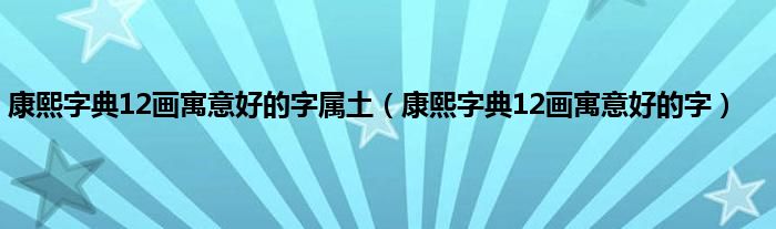 大家好,小科来为大家解答以上问题。康熙字典12画寓意好的字属土,康熙字典12画寓意好的字很多人还不知道,现在让我们一起来看看吧!