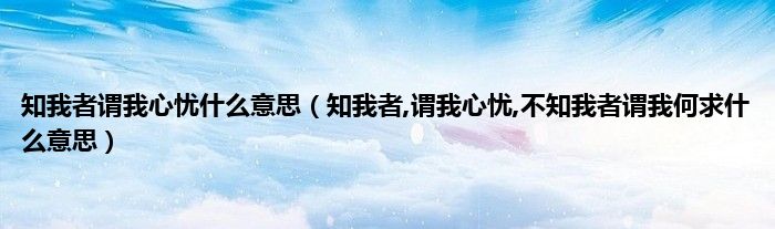 大家好,小科来为大家解答以上问题。知我者谓我心忧什么意思,知我者,谓我心忧,不知我者谓我何求什么意思很多人还不知道,现在让我们一起来看看吧!