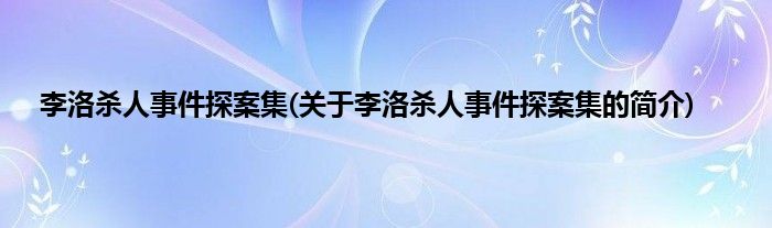 大家好,李洛杀人事件探案集,关于李洛杀人事件探案集的简介很多人还不知道,现在让我们一起来看看吧!