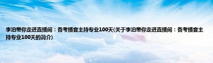 大家好,李泊带你走进直播间:备考播音主持专业100天,关于李泊带你走进直播间:备考播音主持专业100天的简介很多人还不知道,现在让我们一起来看看吧!
