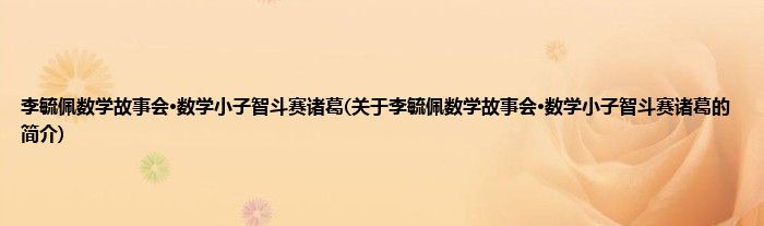 本文关于李毓佩数学故事会·数学小子智斗赛诸葛的简介就讲解完毕,希望对大家有所帮助。