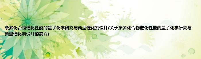 本文关于杂多化合物催化性能的量子化学研究与新型催化剂设计的简介就讲解完毕,希望对大家有所帮助。