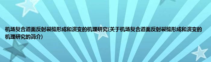 本文关于机场复合道面反射裂缝形成和演变的机理研究的简介就讲解完毕,希望对大家有所帮助。