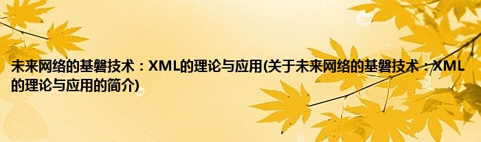 本文关于未来网络的基磐技术:XML的理论与应用的简介就讲解完毕,希望对大家有所帮助。