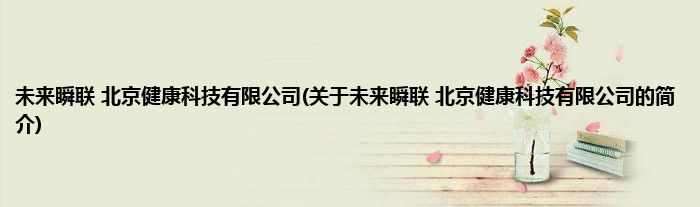 本文关于未来瞬联 北京健康科技有限公司的简介就讲解完毕,希望对大家有所帮助。