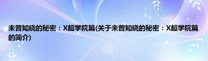 大家好,未曾知晓的秘密:X超学院篇,关于未曾知晓的秘密:X超学院篇的简介很多人还不知道,现在让我们一起来看看吧!