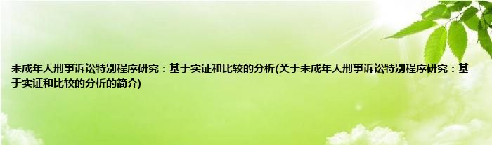 本文关于未成年人刑事诉讼特别程序研究:基于实证和比较的分析的简介就讲解完毕,希望对大家有所帮助。
