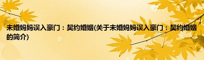 本文关于未婚妈妈误入豪门:契约婚姻的简介就讲解完毕,希望对大家有所帮助。