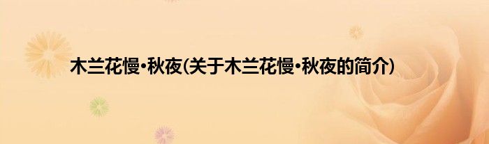 大家好,木兰花慢·秋夜,关于木兰花慢·秋夜的简介很多人还不知道,现在让我们一起来看看吧!