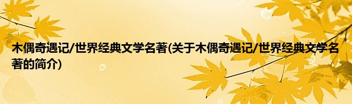 本文关于木偶奇遇记/世界经典文学名著的简介就讲解完毕,希望对大家有所帮助。