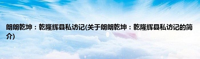 大家好,朗朗乾坤:乾隆辉县私访记,关于朗朗乾坤:乾隆辉县私访记的简介很多人还不知道,现在让我们一起来看看吧!