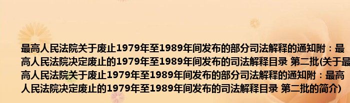 本文关于最高人民法院关于废止1979年至1989年间发布的部分司法解释的通知附:最高人民法院决定废止的1979年至1989年间发布的司法解释目录 第二批的简介就讲解完毕,希望对大家有所帮助。
