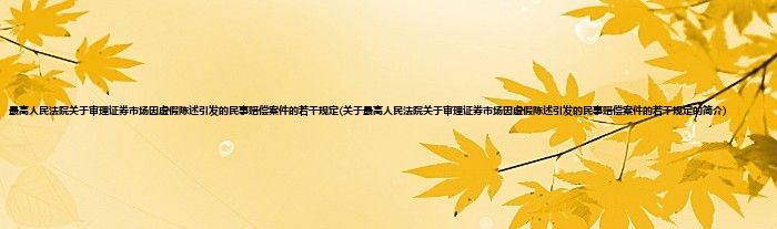 最高人民法院关于审理证券市场因虚假陈述引发的民事赔偿案件的若干规定(关于最高人民法院关于审理证券市场因虚假陈述引发的民事赔偿案件的若干规定的简介)