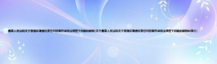 大家好,最高人民法院关于审理环境侵权责任纠纷案件适用法律若干问题的解释,关于最高人民法院关于审理环境侵权责任纠纷案件适用法律若干问题的解释的简介很多人还不知道,现在让我们一起来看看吧!