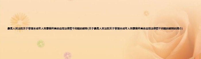 本文关于最高人民法院关于审理未成年人刑事案件具体应用法律若干问题的解释的简介就讲解完毕,希望对大家有所帮助。