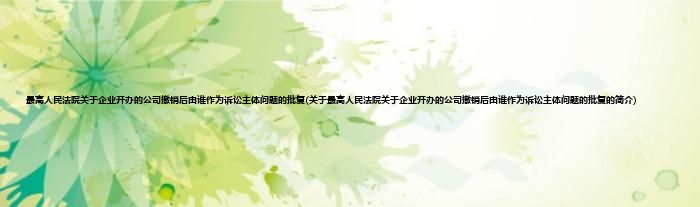 大家好,最高人民法院关于企业开办的公司撤销后由谁作为诉讼主体问题的批复,关于最高人民法院关于企业开办的公司撤销后由谁作为诉讼主体问题的批复的简介很多人还不知道,现在让我们一起来看看吧!