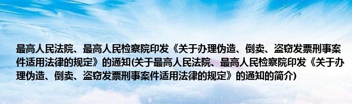 本文关于最高人民法院、最高人民检察院印发《关于办理伪造、倒卖、盗窃发票刑事案件适用法律的规定》的通知的简介就讲解完毕,希望对大家有所帮助。