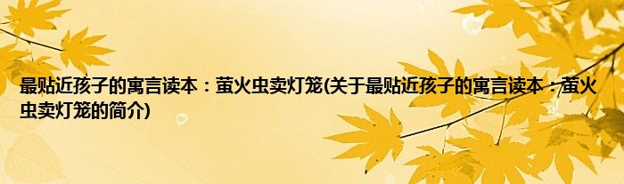 本文关于最贴近孩子的寓言读本:萤火虫卖灯笼的简介就讲解完毕,希望对大家有所帮助。