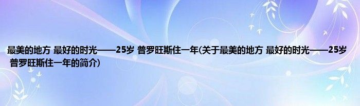 大家好,最美的地方,最好的时光——25岁,普罗旺斯住一年,关于最美的地方,最好的时光——25岁,普罗旺斯住一年的简介很多人还不知道,现在让我们一起来看看吧!
