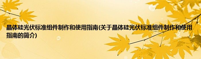 本文关于晶体硅光伏标准组件制作和使用指南的简介就讲解完毕,希望对大家有所帮助。