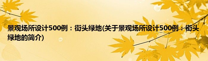 本文关于景观场所设计500例:街头绿地的简介就讲解完毕,希望对大家有所帮助。
