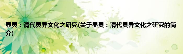 本文关于显灵:清代灵异文化之研究的简介就讲解完毕,希望对大家有所帮助。