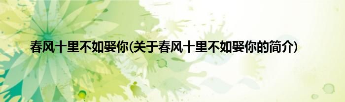 本文关于春风十里不如娶你的简介就讲解完毕,希望对大家有所帮助。