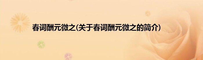 1、 《春词酬元微之》是唐代诗人沈亚之创作的一首七言绝句,收录于《全唐诗》 中。