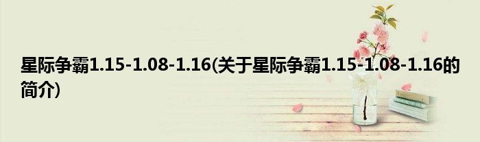 大家好,星际争霸1.15-1.08-1.16,关于星际争霸1.15-1.08-1.16的简介很多人还不知道,现在让我们一起来看看吧!