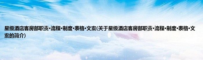本文关于星级酒店客房部职责·流程·制度·表格·文案的简介就讲解完毕,希望对大家有所帮助。