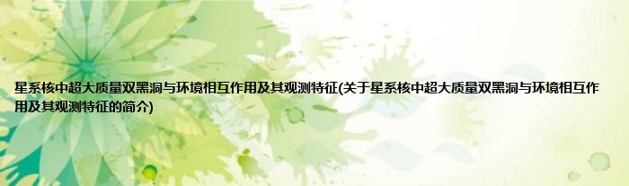 本文关于星系核中超大质量双黑洞与环境相互作用及其观测特征的简介就讲解完毕,希望对大家有所帮助。