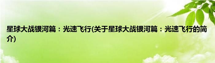本文关于星球大战银河篇:光速飞行的简介就讲解完毕,希望对大家有所帮助。