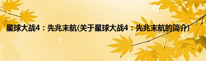 本文关于星球大战4:先兆末航的简介就讲解完毕,希望对大家有所帮助。