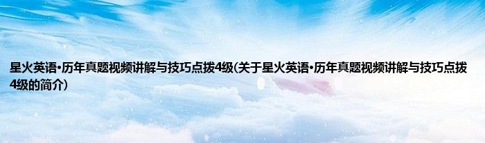 本文关于星火英语·历年真题视频讲解与技巧点拨4级的简介就讲解完毕,希望对大家有所帮助。