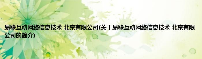 大家好,易联互动网络信息技术 北京有限公司,关于易联互动网络信息技术 北京有限公司的简介很多人还不知道,现在让我们一起来看看吧!