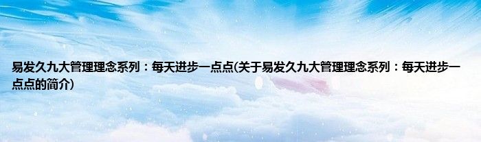 大家好,易发久九大管理理念系列:每天进步一点点,关于易发久九大管理理念系列:每天进步一点点的简介很多人还不知道,现在让我们一起来看看吧!