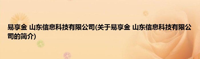本文关于易享金 山东信息科技有限公司的简介就讲解完毕,希望对大家有所帮助。