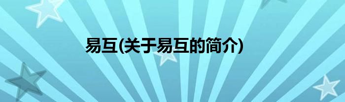 大家好,易互,关于易互的简介很多人还不知道,现在让我们一起来看看吧!