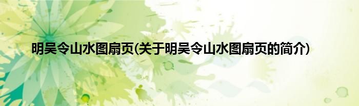 本文关于明吴令山水图扇页的简介就讲解完毕,希望对大家有所帮助。