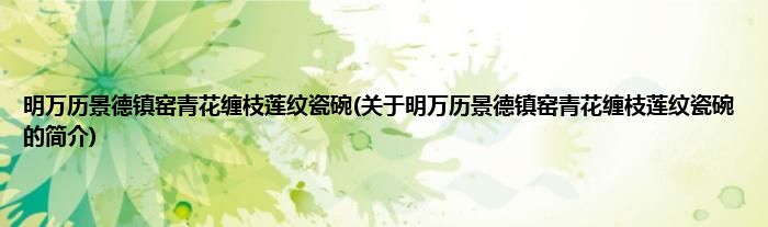 本文关于明万历景德镇窑青花缠枝莲纹瓷碗的简介就讲解完毕,希望对大家有所帮助。
