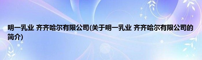 本文关于明一乳业 齐齐哈尔有限公司的简介就讲解完毕,希望对大家有所帮助。