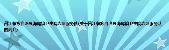 本文关于昌江黎族自治县海尾镇卫生院志愿服务队的简介就讲解完毕,希望对大家有所帮助。