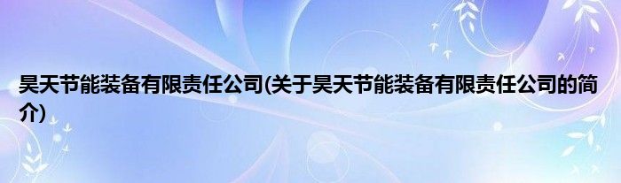 大家好,昊天节能装备有限责任公司,关于昊天节能装备有限责任公司的简介很多人还不知道,现在让我们一起来看看吧!