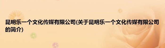 昆明乐一个文化传媒有限公司(关于昆明乐一个文化传媒有限公司的简介)